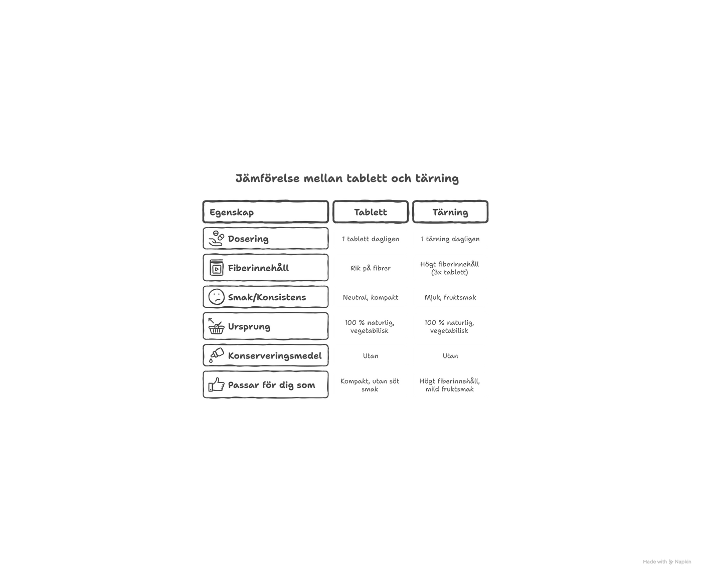 Tärningarna ger >3× så mycket fibrer som tabletten per rekommenderad dos – för dig som vill maximera ditt fiberintag.