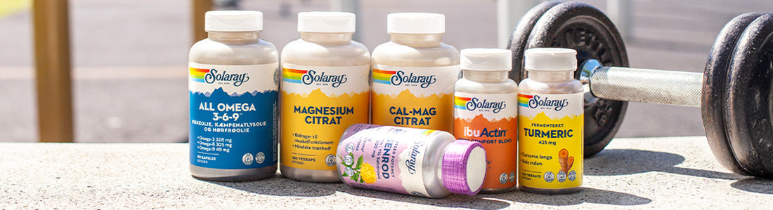 När kroppen ska prestera, återhämta sig och hålla balansen, kan det vara meningsfullt att ge den rätt näringsstöd. På bilden ser du ett urval av Solarays produkter som tillsammans stöttar muskler, skelett, hjärta och allmänt välbefinnande.
