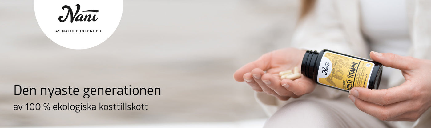Nani är ett danskt kosttillskottsföretag, med en ambition att göra milda och rena kosttillskott, skapade av alla de bästa från naturen. I Nani tror de att vi av naturen är gjorda för att få ex. våra vitaminer och mineraler genom mat - just för att det är så våra kroppar har gjort det under årtusenden och specialiserar sig på. Här är vitaminer och mineraler inte bara isolerade enheter, utan istället bundna till komplexa strukturer med allt från kolhydrater, proteiner, fetter, flavonoider, antioxidanter och mer.