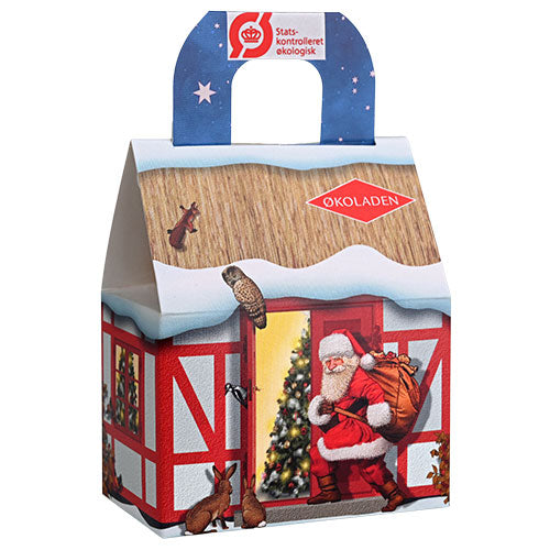 Julehus som ophæng til juletræ. Indeholder 2 stk. mælkechokolader.
