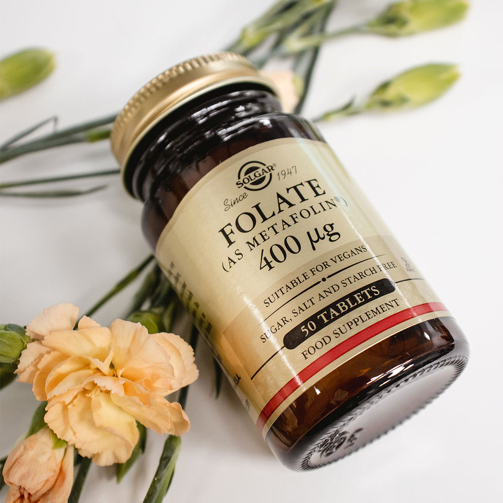 Solgar Folat (Folinsyra) 400 µg, även känt som Vitamin B9, spelar en avgörande roll i en mängd kroppsfunktioner, men är särskilt känt för sin betydelse för vävnadstillväxt hos gravida kvinnor.